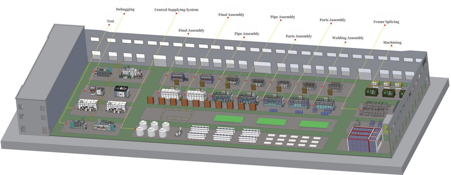 With the pluse work station for assembly processes, we reach the target of standardization, work flow, visualisation, ensure the high quality and reliability of the equipment to be delivered, as well as rapid response to manufacturing, and early delivery to customers for use.